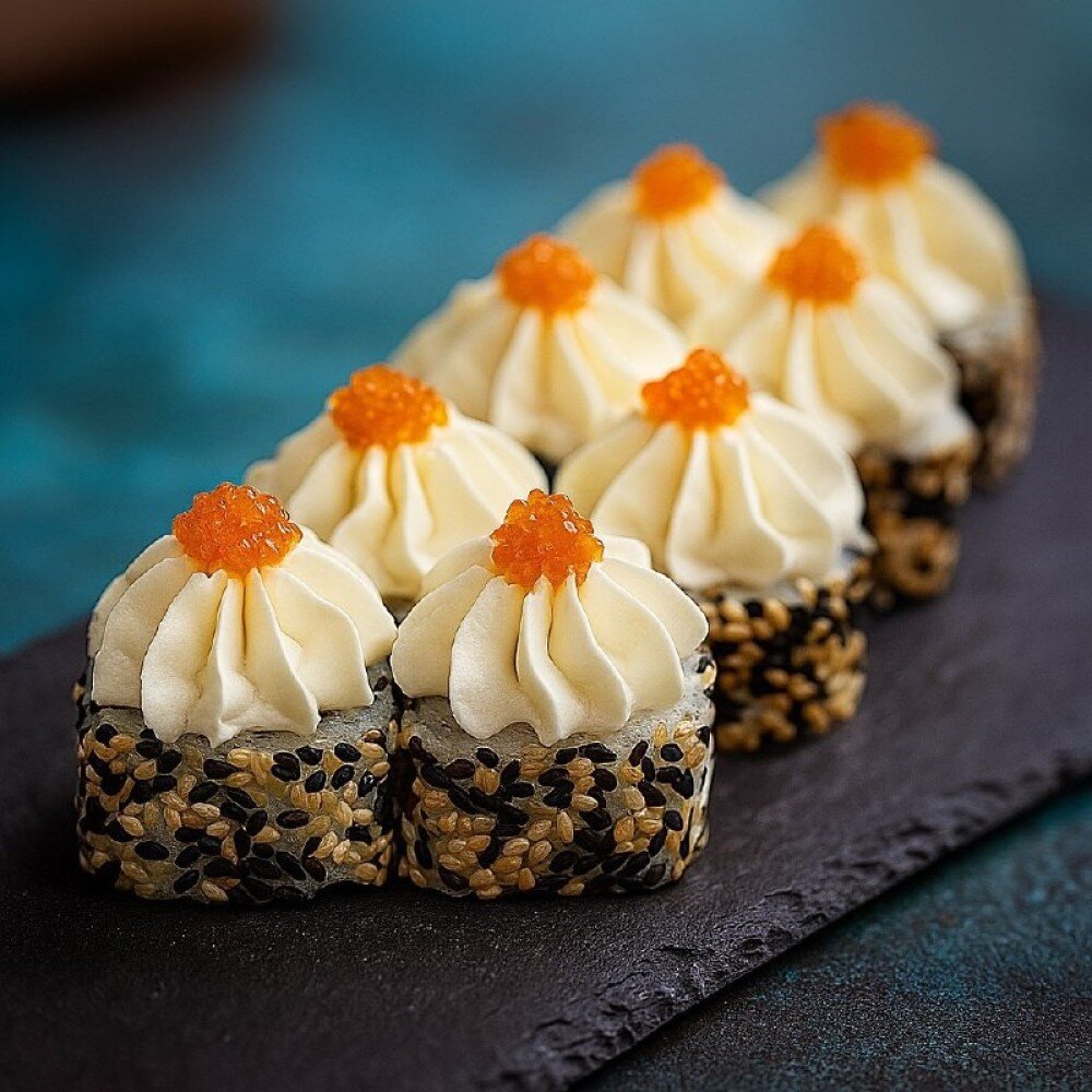 Куриная грудка, сыр сливочный "Cremette", огурец, кунжут, икра масаго