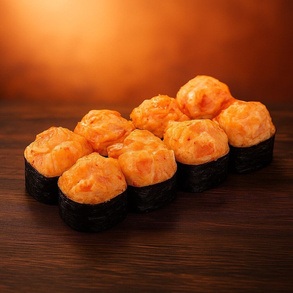 Креветка тигровая, омлет японский, огурец, лук зеленый, соус «Cпайси»