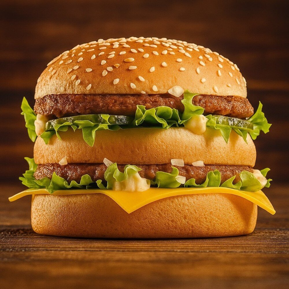 Куриная котлета ( 2 шт.) , лист салата, сыр, помидор, огурец, фирменный соус.