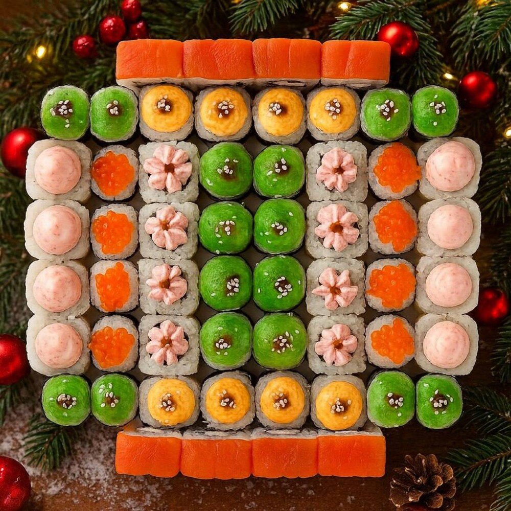 2. Ролл запеченный с окунем / пекинка / сыр / чесночная шапка зеленая