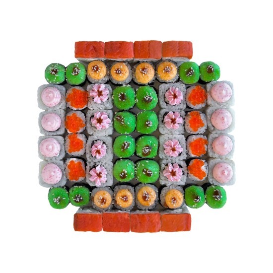 Холодны с Томаго - сыр, блин томаго, бекон и жаренный лук на шапочке, полит унаги.