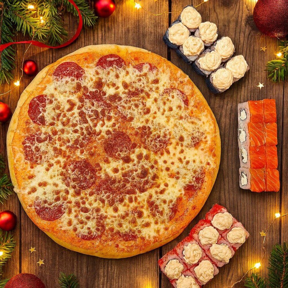 Пицца Пепперони, ролл Филадельфия Классик, ролл запечённая Калифорния, Ролл «Краб Cheese»