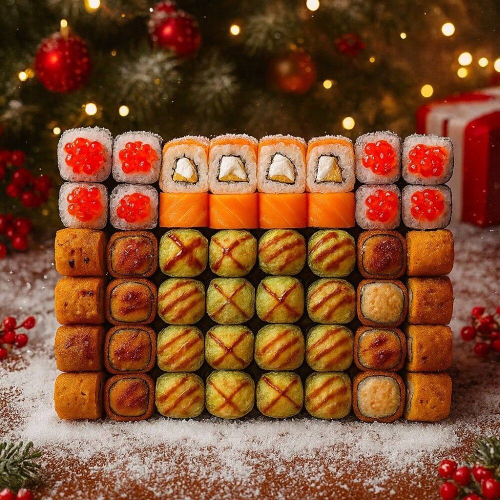 - Жаренный ролл с крабом - краб, сыр творожный, имбирь, полит соусом цезарь