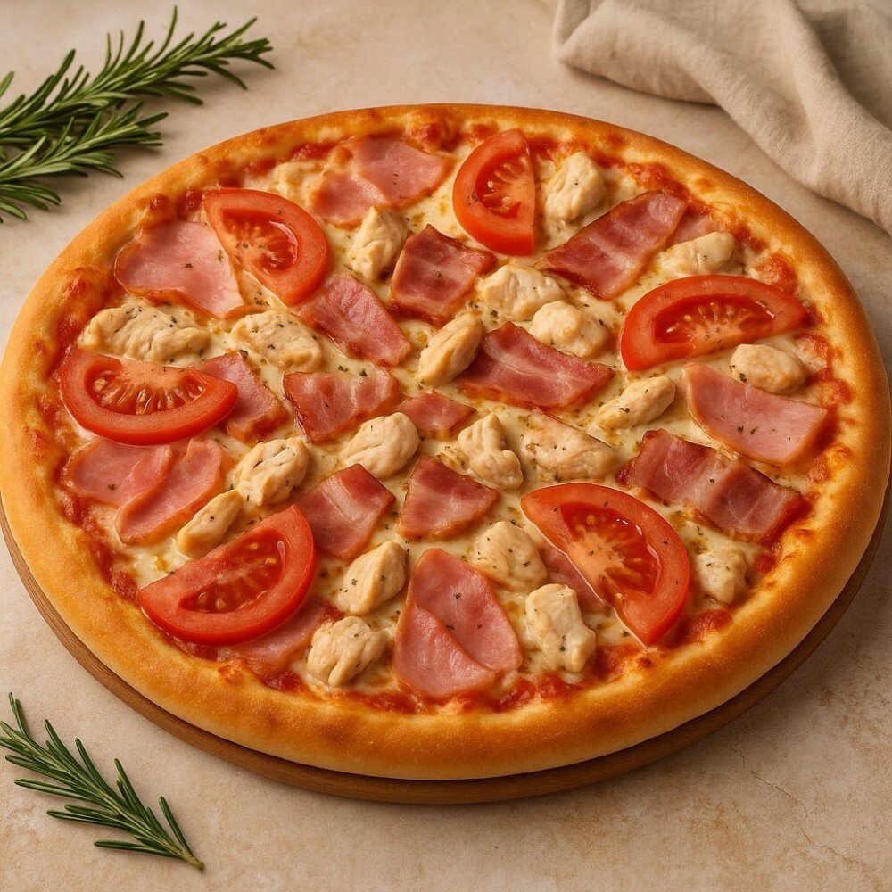 Ветчина, бекон, томаты, курица, сливочный сыр, прованские травы