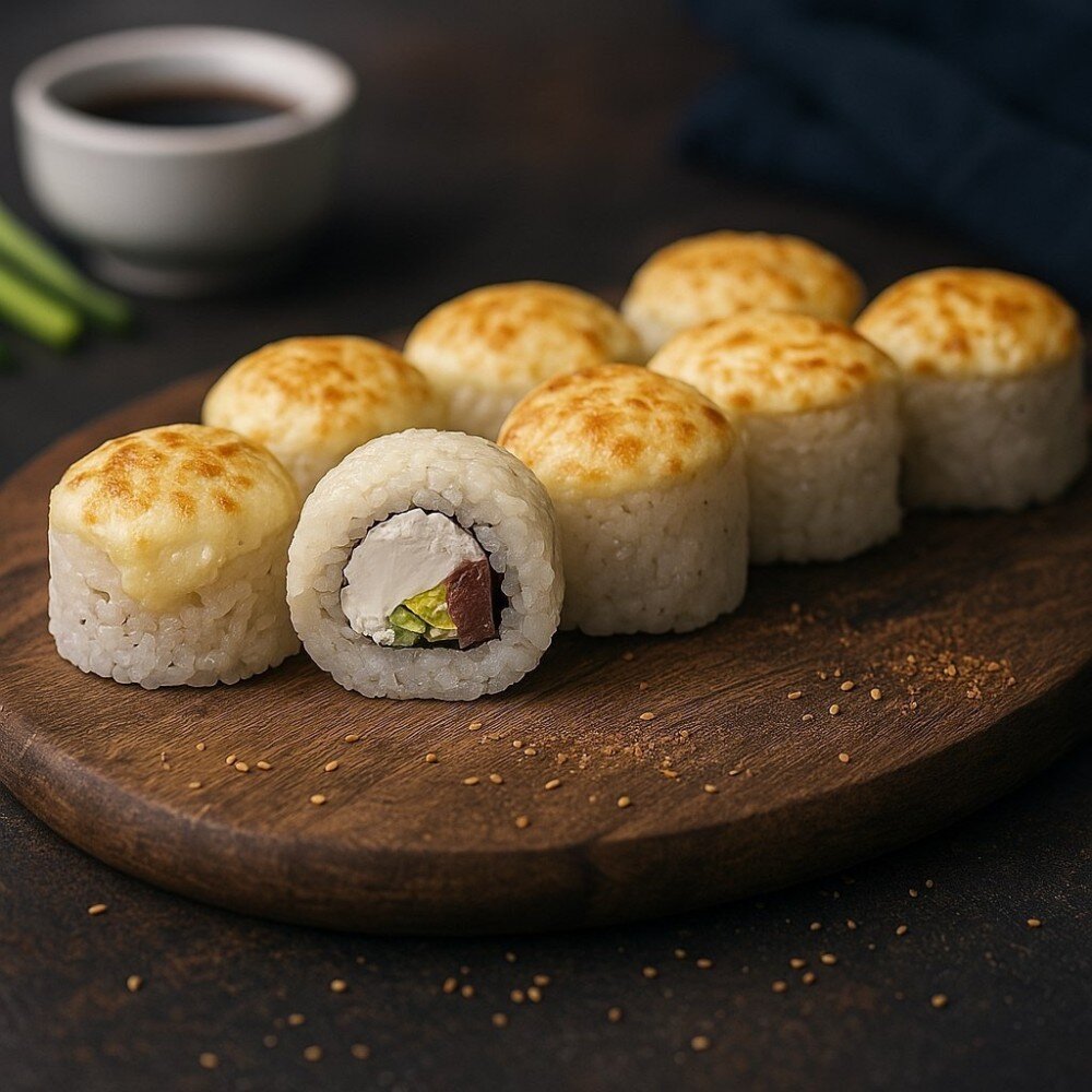 Курица, творожный сыр, помидор, пекинская капуста, сырная шапка, рис, нори