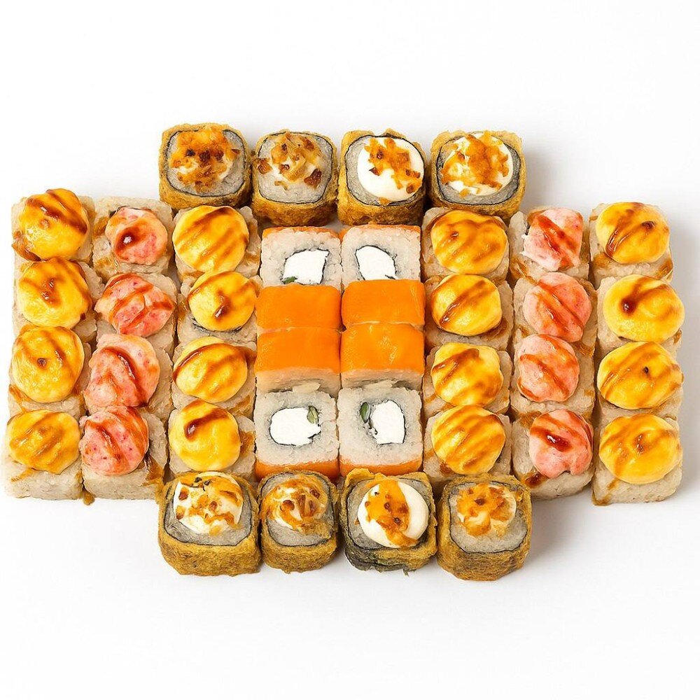 Нежный с крабом 8 шт. - краб - микс соус, творожный сыр, сырная шапка, унаги соус, рис, нори