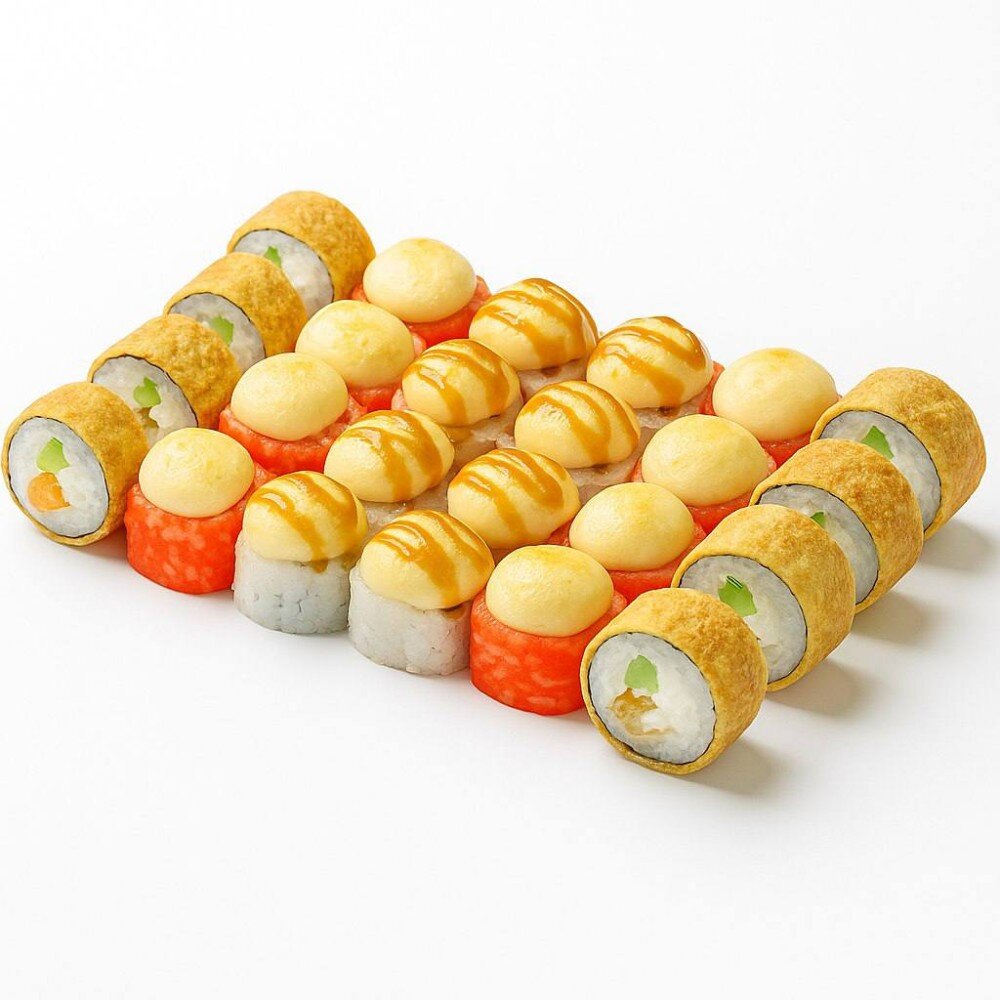 Нежный Чикен - Курица, творожный сыр, пекинская капуста, унаги соус, сырная шапка, рис, нори