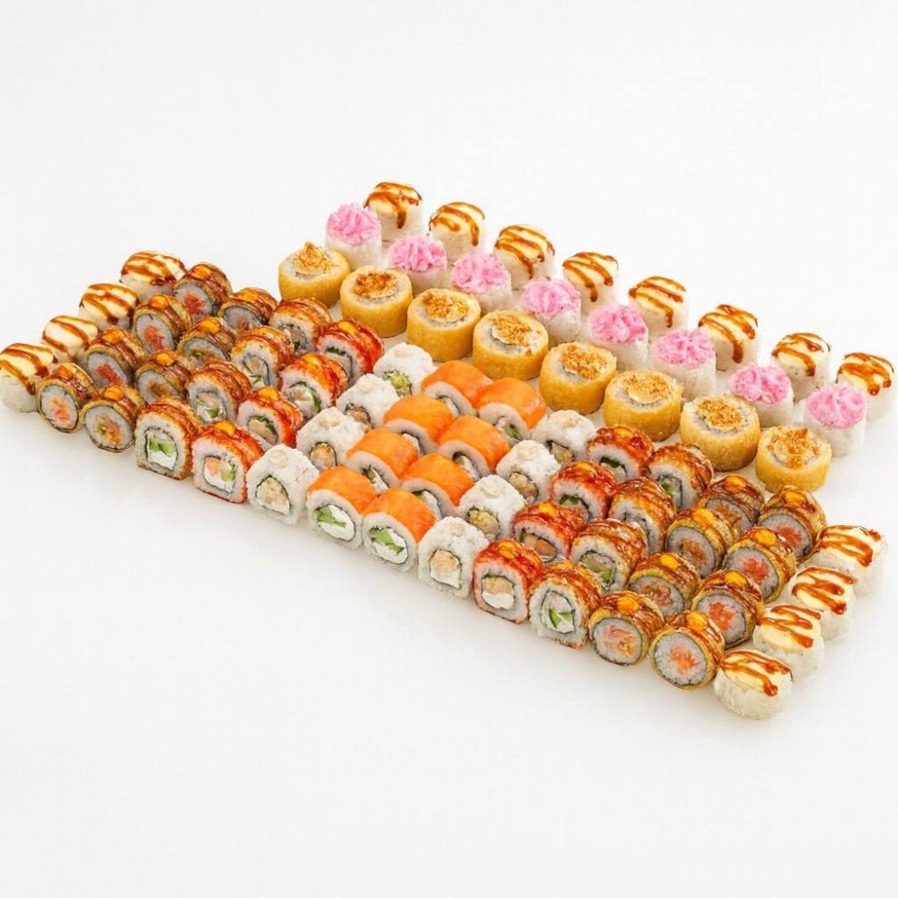 краб-микс соус, творожный сыр, унаги соус, сырная шапка, рис, нори