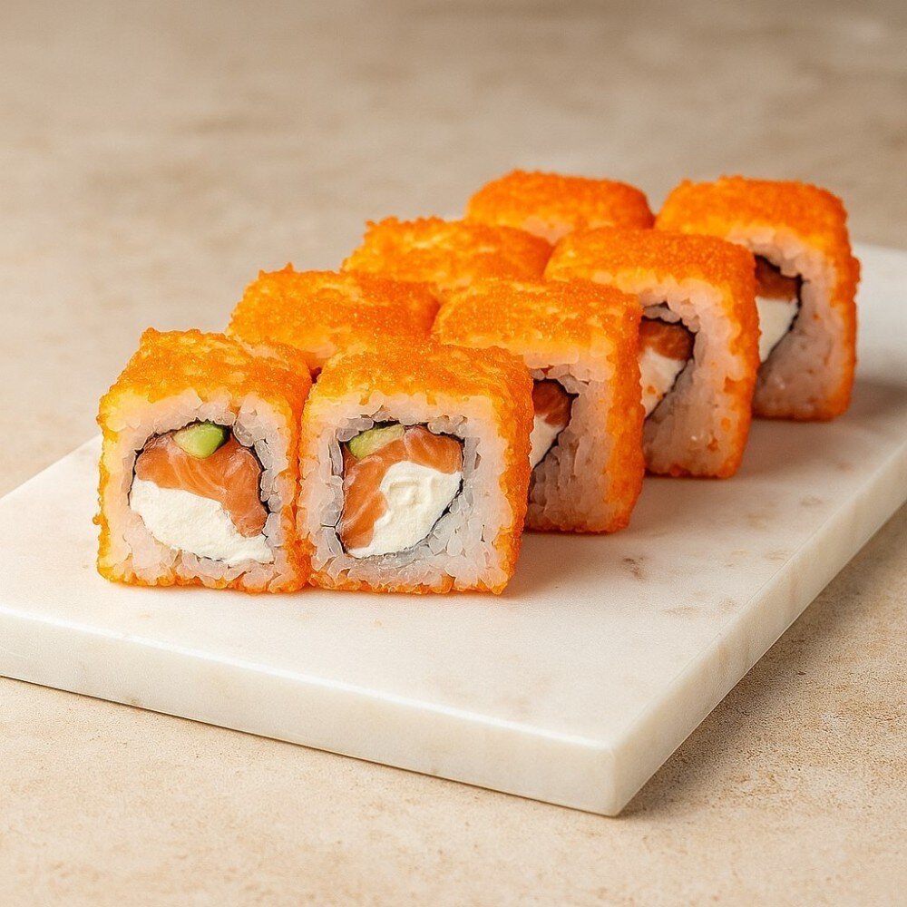 Лосось, огурец, икра масаго, сыр сливочный "Cremette"